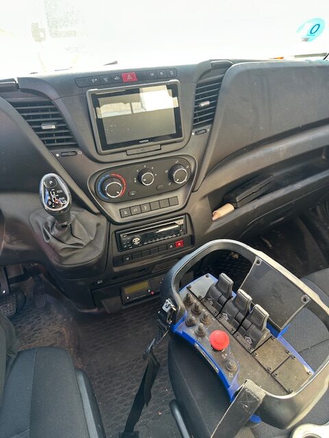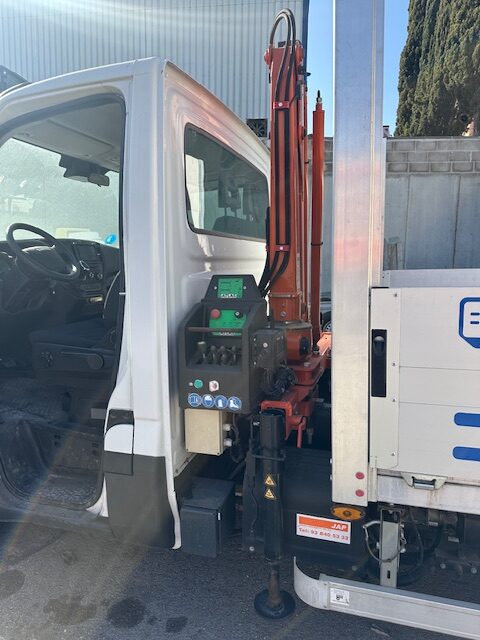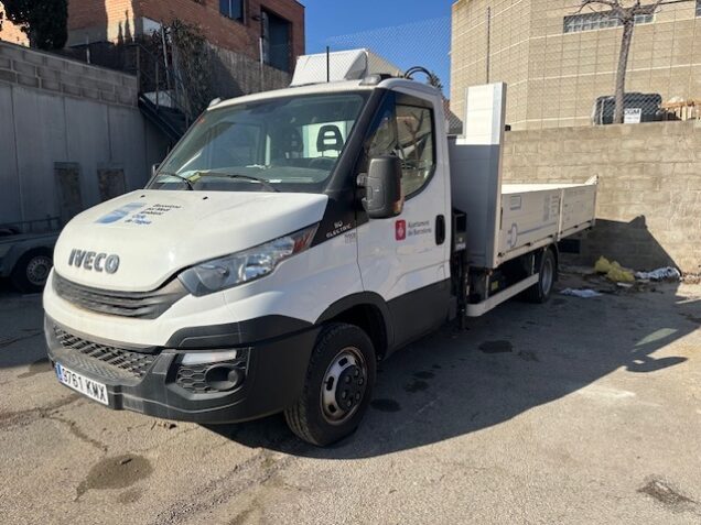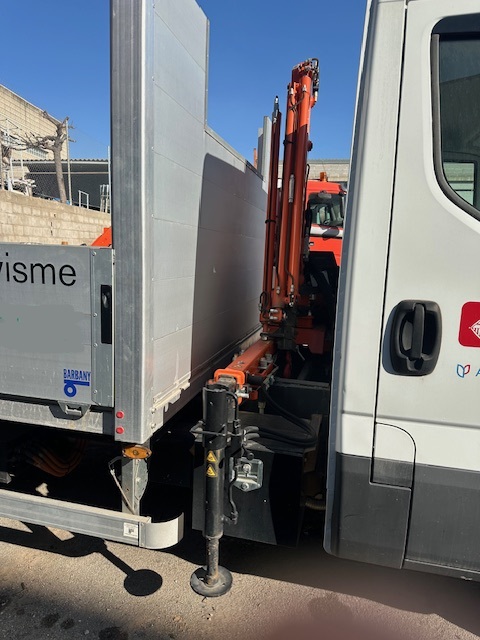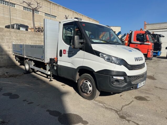 Camión Iveco de 5000kg. Equipado con grúa Atlas T23-A28SC con 3 salidas hidráulicas y 1 manual, volquete de laterales abatibles, camión semi nuevo con 3000km. Del año 2018. Necesita reparar baterías.