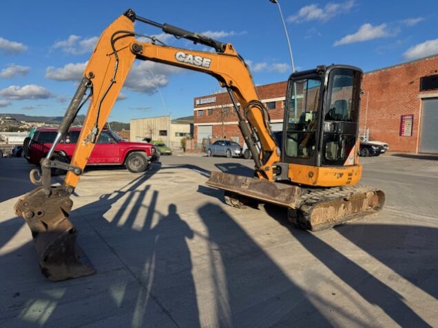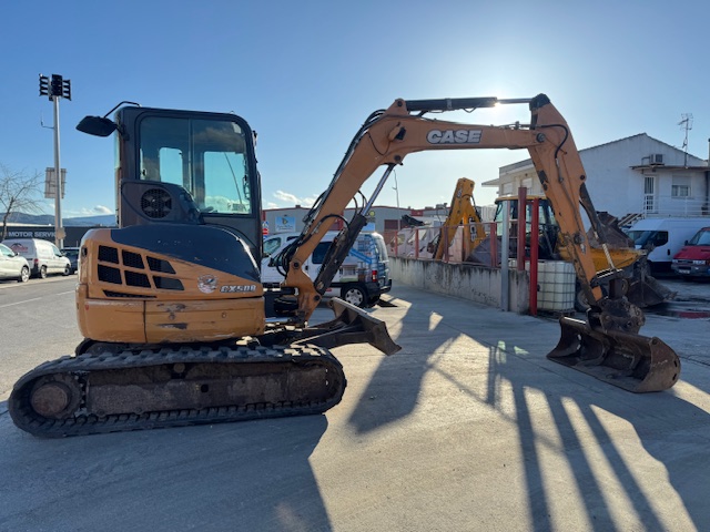 19.800€Excavadora compacta CASE CX50B de 5 toneladas, año 2015, 9200 horas de trabajo, aire acondicionado, cadenas al 80%, enganche rápido con cazos de 40 y limpieza, instalación de martillo. Lista para trabajar.