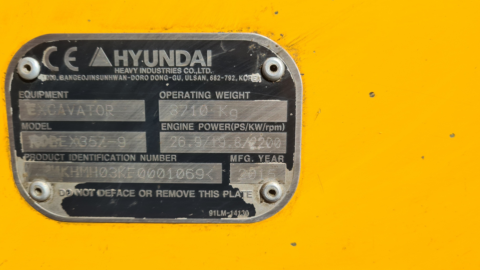 Excavadora de cadenas de goma de 3,5tn, HYUNDAI 35z.9, año 2015, 3500 horas de trabajo, peso operativo 3.710kg, aire acondicionado, motor Yanmar. Máquina de único propietario, lista para trabajar. Trabajando actualmente.