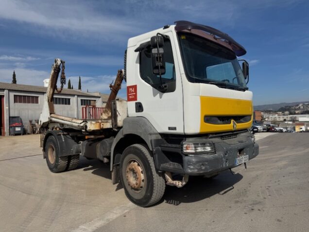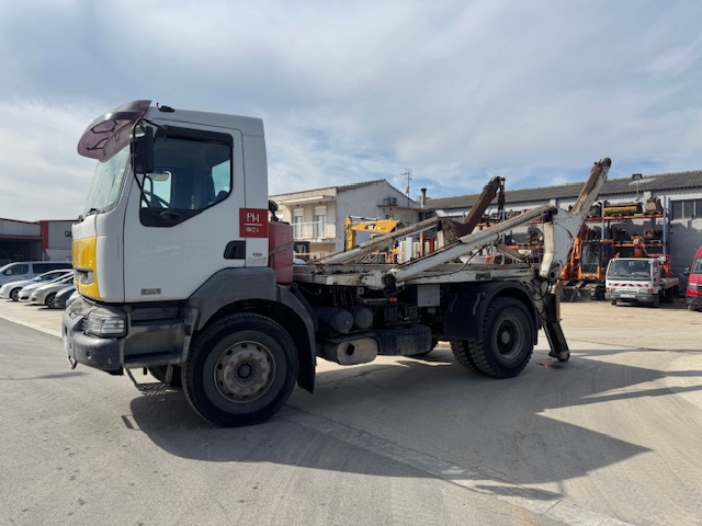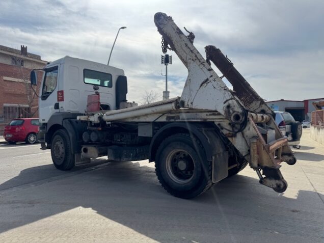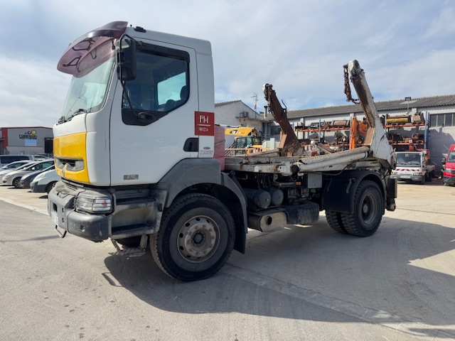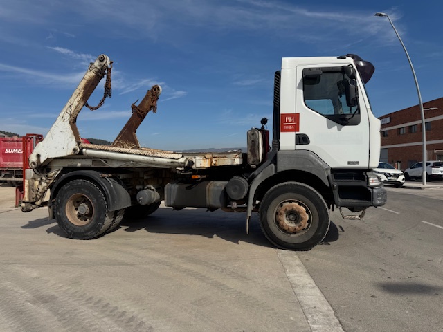 Camión RENAULT 270 portacontenedores, año 2002, 259.000km, tara 9600kg, equipado con equipo portacontenedores de cadenas CAYVOL, ITV al día, camion listo para trabajar.