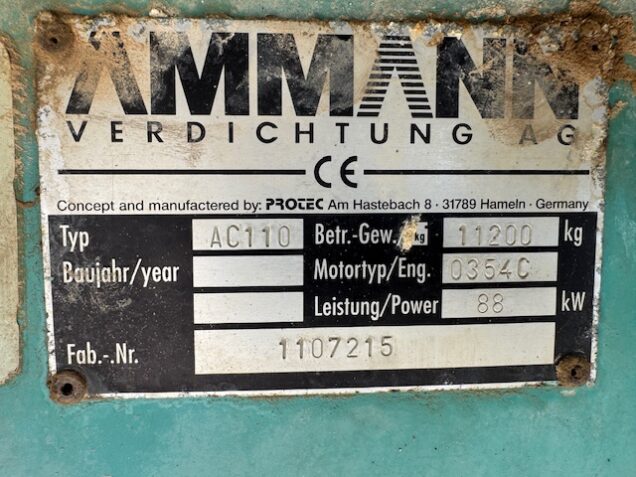 23.800€Rodillo compactador AMMANN modelo AC110, peso operativo 11.200kg, 4900 horas de trabajo, motor PERKINS, rodillo listo para trabajar. A toda prueba.